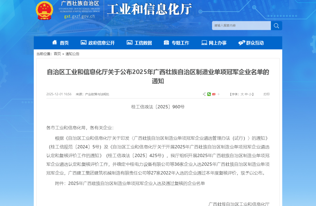 此次入选2025年自治区制造业单项冠军企业名单,既是荣誉更是责任。公司将持续秉持单项冠军“专注、创新、引领”的发展理念,充分发挥示范带动作用,以科技创新为核心引擎,以品质升级为发展主线,以市场需求为导向,持续拓展应用场景,带动产业链上下游协同创新、融通发展,为全球客户提供更优质的产品与服务,为广西制造业提质增效、高质量发展贡献更大力量。