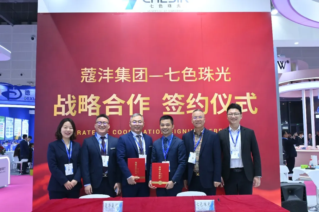 On March 18, 2026, the opening day of the China Personal and Homecare Ingredients Exhibition (PCHi 2026), Guangxi Chesir Pearl Material Co., LTD., a subsidiary of Global New Material International, officially signed a strategic cooperation agreement with Co-fun Group at Booth [6F10]. The two sides will establish a joint laboratory to launch In-depth collaboration on the development and application exploration of pearlescent materials and synthetic mica in the cosmetics field. Zhou Fangchao, General Manager of Chesir, and Pu Ke, Founder and General Manager of Co-fun Group, signed the agreement on behalf of their respective companies. Jin Zengqin, General Manager of Zhejiang Hongzun Technology, and Chen Min, Sales Director of Chesir, attended the event and witnessed the signing.